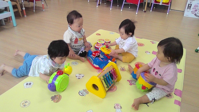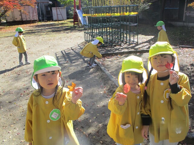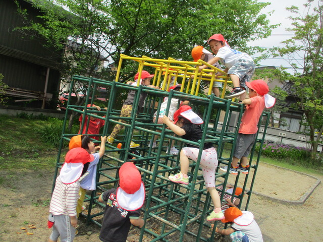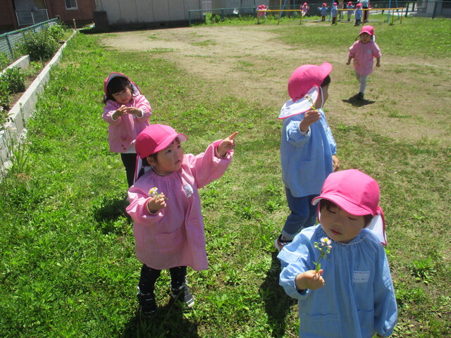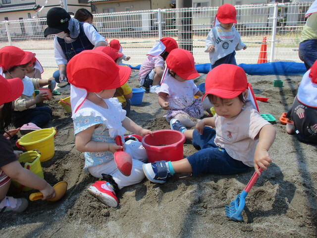 0歳児の保育 生体リズムについて 一人一人の子どもの生活のリズムを大切にしながら、よく食べ、よく遊び、よく眠るよう天気の良い日には、散歩や外気浴をし、十分に身体を動かして生活の安定を図っています。 環境について 乳児は病気にかかりやすいので、一人一人の子どもの状態を観察したり、衛生面などに配慮しています。 また、空気清浄機を使い、安全で清潔な保育室で過ごしています。 1歳児の保育 生体リズムについて 連絡帳で園での子どもの様子や活動を知らせたり、登降園時に保護者と家庭での生活などを話し、連携をとりながら保育教諭の信頼関係を作れるようにしています。 一人一人の子どもの発達、成長を把握して、規則正しい食事や生活リズムが身につくよう配慮しています。 環境について 身の回りの物に興味を示し、物の名前を覚えたり、物事がわかってくるこの時期。子ども達が興味を持てるよう遊具をたくさん用意しています。 また、いろいろな感触を味わえる遊びも積極的に取り入れることで、五感を使い楽しく遊んでいます。 2歳児の保育 生体リズムについて 日々の生活リズムや活動を繰り返す中で、生活の基礎を培い、興味や関心を持たせたり、安心して楽しく過ごせるようにしています。 また、自分でしようとする意欲を大切に受け止め、援助したり、見守ったり、褒めたりして自信を持たせるようにしています。 食育について 季節の食べ物を見たり、触れたり、食べたりして興味、関心を持たせています。 また、フォークから箸に移行し、持ち方や食べ方のマナーを知り、少しでも習慣が付くようにと日々、言葉がけをしています。 自分で、一口でも食べようとする意欲を持たせ、友達と一緒に楽しく食べる喜びを味わわせています。 3歳児の保育 環境について 1クラス少人数で、ゆったりと関わっています。様々な遊具で遊び、園庭の草花や散歩を通して自然や社会に親しんでいます。日々、安心、安全はもとより、子ども達の思いを十分理解し、共感していく保育をすすめています。 食育について 自分で給食を配膳するセルフランチや、好きなおやつを選ぶおやつセレクトをし、食べることを楽しんでいます。食事中では、親しんでいる曲をかけ、食事のマナーや正しい箸の持ち方も知らせ、楽しい雰囲気作りをしています。 4歳児の保育 食育について 基本的な食生活を身に付け、食べ物や健康について興味を持ち、友達と一緒に楽しく食事をしたり、様々な物を食べる楽しさを味わえるようにしています。 セルフランチを通し、自分の適量も分かるようになります。トングを使って、上手に盛りつけたり、配膳したりし、楽しんでいます。 行事について 運動、製作、表現など、いろいろな遊びに興味津々な子ども達。 運動会、作品展、生活発表会への取り組みにも積極的な姿が見られます。様々な行事の意味や内容がわかり、期待感を持って参加しています。 5歳児の保育 生体リズムについて 小学校へのスムーズな移行を意識して、食事の食べ始める時間や要する時間を考慮しています。 また、子どもの行動範囲や活動が活発になり、体操教室やミニハイキングを通して、体力の向上や素早さ、バランス、瞬発力などを養ったり、季節感を感じさせながら気分転換も図っています。 行事について 伝統的な行事や園行事だけでなく、園外に出て参加する行事も多くなり、その中で、子ども達が中心となって行事を進めていく機会も増えていきます。様々な体験を通して、友達と協力し、やり遂げる事で、充実感や自信を持つことができ、生活や行動の励みとなり、いっそう自立心も高まっていきます。
